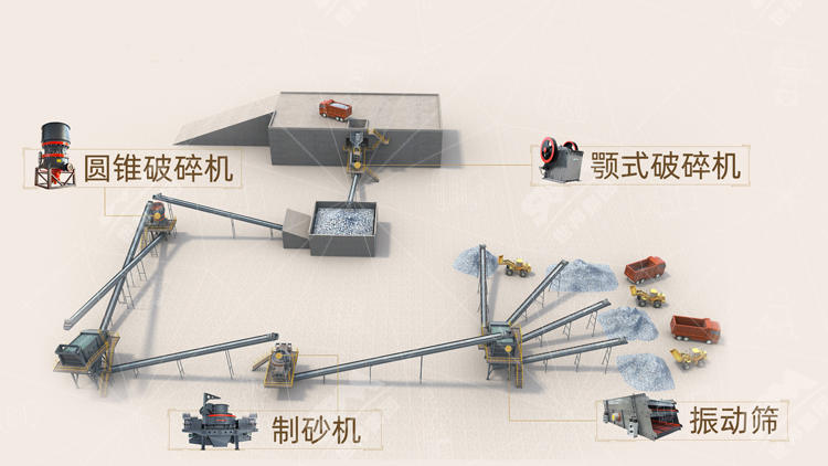 砂石加工成套設(shè)備其實(shí)就是一條砂石生產(chǎn)線,砂石生產(chǎn)線主要由破碎機(jī)、制砂機(jī)以及一些輔助設(shè)備組成,大致由顎式破碎機(jī)或反擊式破碎機(jī)或圓錐破碎機(jī)、制砂機(jī)、給料機(jī)、輸送帶、振動(dòng)