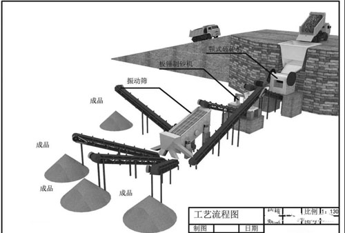 在工程應(yīng)用中,碎石的用量占到砂用量的2倍以上,單獨(dú)建立機(jī)制砂廠投入較大,供應(yīng)數(shù)量有限,在經(jīng)濟(jì)上不太合算,在碎石生產(chǎn)加工系統(tǒng)的基礎(chǔ)上,增加一套立軸式?jīng)_擊破碎機(jī)(制砂機(jī))及一套粉塵去除裝置,把經(jīng)過顎式破碎機(jī)破碎的回料及部分不同粒徑的石料進(jìn)入制砂機(jī),分離出不符合級配要求粒徑的石粉形成機(jī)制砂。