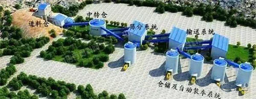 包括粗破喂料倉(cāng)、中細(xì)破及制砂緩沖倉(cāng)、產(chǎn)品儲(chǔ)存庫(kù)、石粉儲(chǔ)存庫(kù)。