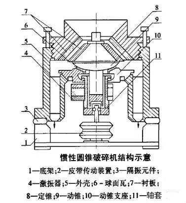 該機(jī)的缺點(diǎn)是能耗較高,機(jī)器笨重,產(chǎn)量也偏低。隨著圓錐破碎機(jī)日益高能化的發(fā)展方向,該機(jī)也將逐漸被液壓圓錐破碎機(jī)取代。