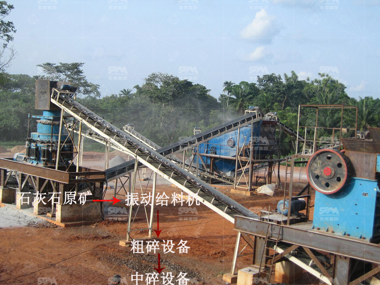 主要的石灰石加工設備為顎破機、反擊破、制砂機以及洗砂機,然后輔助的設備為給料機、振動篩、輸送機等。