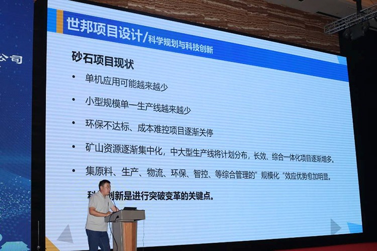 張培林經(jīng)理報(bào)告主要包含三部分,從當(dāng)前砂石項(xiàng)目現(xiàn)狀入手,同與會(huì)者討論當(dāng)前形勢(shì)下如何高效利用科學(xué)規(guī)劃和科技創(chuàng)新推動(dòng)砂石骨料行業(yè)實(shí)現(xiàn)高質(zhì)量綠色發(fā)展。