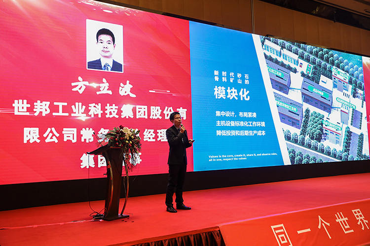 報告中,方總分點闡述了世邦在打造骨料礦山項目時對“綠色化、安全化、模塊化、工業(yè)化、智能化、品質(zhì)化”六大設(shè)計理念的堅守,間接解讀了世邦集團(tuán)多年來如何吹響高質(zhì)量發(fā)展號角,實現(xiàn)了從單一裝備供應(yīng)商到綠色礦山一體化落地解決方案專家的身份轉(zhuǎn)型。