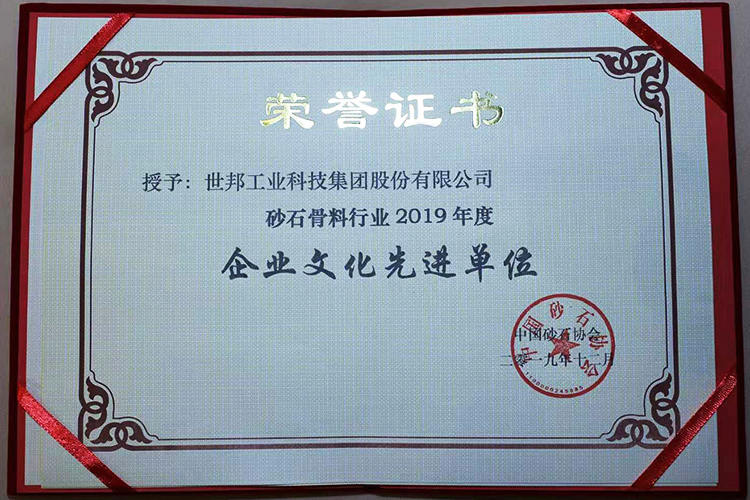 多年的奮力拼搏,世邦在一次次項(xiàng)目中顯露崢嶸,淋漓盡致的展現(xiàn)了其奮發(fā)向上的精神風(fēng)貌,為自己鍍上了耀眼的光輝,贏來了一項(xiàng)又一項(xiàng)殊榮。在閉幕式上,世邦集團(tuán)獲得了“砂石骨料行業(yè)卓越企業(yè)”“砂石骨料行業(yè)企業(yè)文化先進(jìn)單位”“砂石骨料行業(yè)創(chuàng)新企業(yè)”等多個(gè)榮譽(yù)稱號(hào),同時(shí),世邦卓越成員也以出色的表現(xiàn)贏得了“綠色發(fā)展先進(jìn)個(gè)人”“卓越職業(yè)經(jīng)理人”“卓越工程師”“卓越企業(yè)家”等榮譽(yù)稱號(hào)。