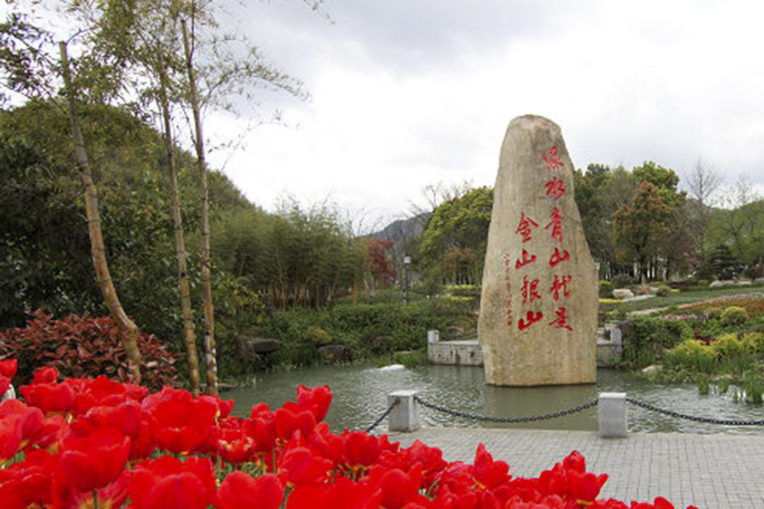 ▲“綠水青山就是金山銀山”紀(jì)念石碑(圖源自牡丹晚報)