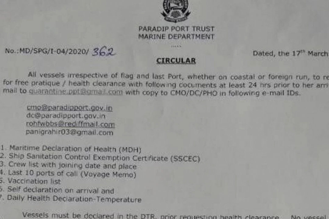 ▲印度航運(yùn)總局14天隔離檢疫通知
