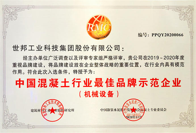 世邦在混凝土行業(yè)獲評榮譽(yù)