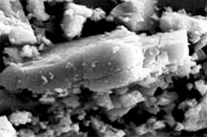 ▲采用“破”的原理,顯微鏡下石灰石粉體上的暗紋