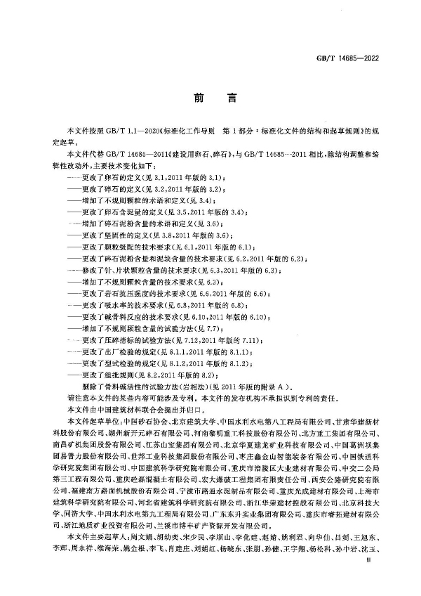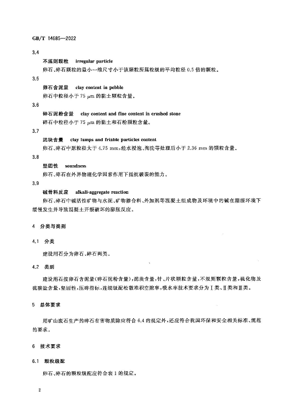 建筑用石料的生產(chǎn)不僅會(huì)影響自然環(huán)境,還影響工程建設(shè)質(zhì)量。隨著工程建筑對石料的消耗不斷增加,石料的來源趨于復(fù)雜,同時(shí)隨著工程技術(shù)的進(jìn)步,對混凝土質(zhì)量要求提高,對石料的質(zhì)量要求也不斷提高。本標(biāo)準(zhǔn)適用于建設(shè)工程中水泥混凝土及其制品用卵石、碎石。