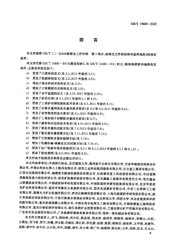 該標(biāo)準(zhǔn)規(guī)定了建設(shè)用砂的分類、試驗(yàn)檢驗(yàn)、標(biāo)志、儲(chǔ)存和運(yùn)輸?shù)囊?guī)則,適用于建設(shè)工程中水泥混凝土及其制品和普通砂漿用砂。